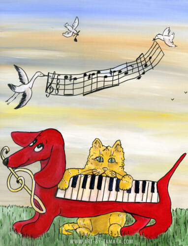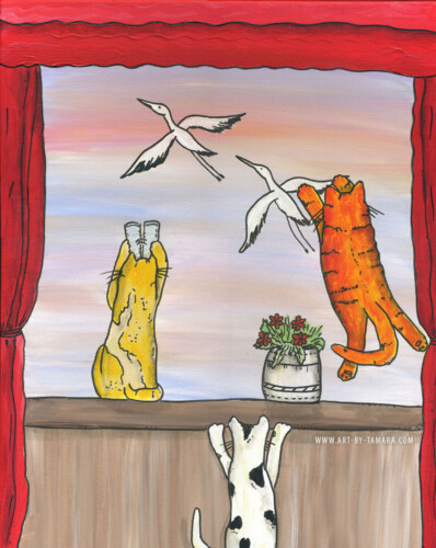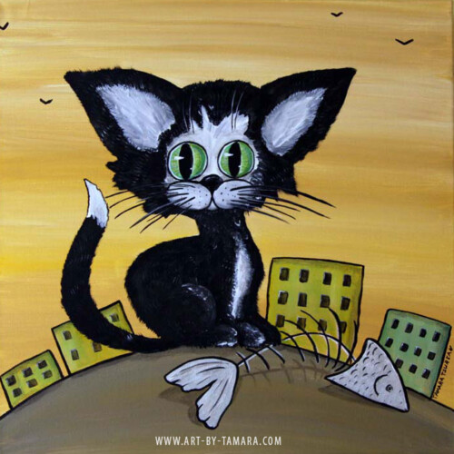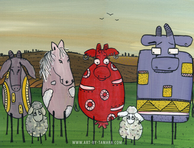 An essential part of me is being a very emotional, easy-going and fun-loving person, and it’s fully represented by the whimsical folk art series of my paintings. In them I tell light-hearted